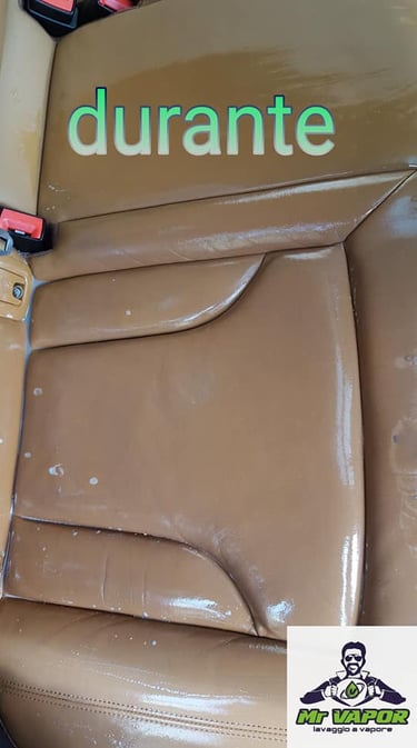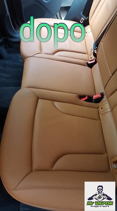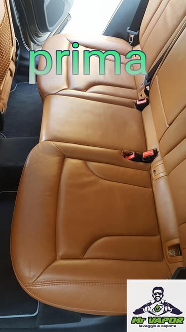 Pulizia profonda a vapore per interni auto, con detergenti specifici e per la cura dei sedili in pelle